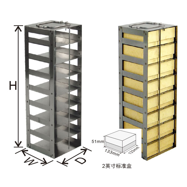 由优质不锈钢材料制成的卧式冰箱分隔架,适合放置在卧式冰箱或者液氮罐中使用。每只分隔架均可选配适合的安全锁定装置。按照上图的示意,测量出您所使用的卧式冰箱或液氮罐的内部尺寸,通过这些尺寸,即可确定适合您卧式冰箱或液氮罐的分隔架的最大高度(H)和型号。采购该J9·产品时,可以选择是否配备标准纸盒、塑料盒或者金属盒。所有的分隔架均包含不锈钢锁定杆。